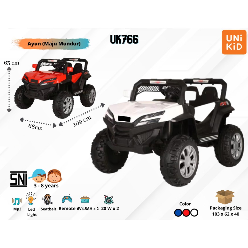 Kelebihan - Kelebihan membeli Mobil Aki Mainan Anak Remote Control Jeep Unikid UK766 Rocking 4,5AH SNI di Toko ini
