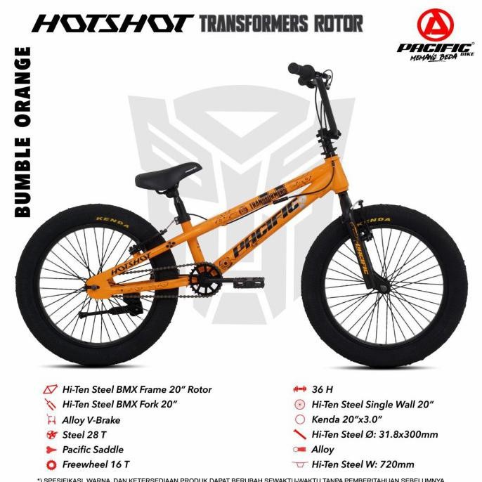 Harga Sepeda Anak BMX HOTSHOT TRANSFORMERS 3.0 ROTOR 20 Inch Pacific Garansi SNI saat ini masih murah hanya Rp. 1.700.000,00, kita tidak akan pernah tahu tentang Harga ini di masa depan, juga stok barang ini nanti atau besok hari, bisa saja harganya naik tinggi atau bisa juga stok sudah Habis.