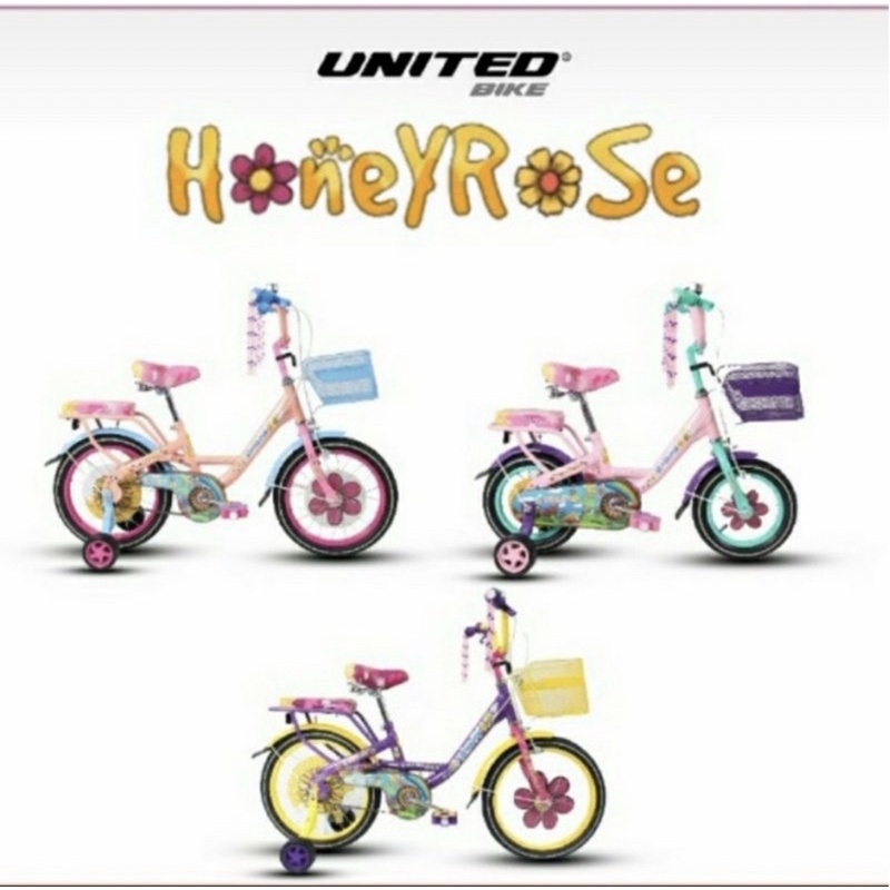 Harga Sepeda Anak Perempuan UNITED HONEYROSE 12 16 18 Inch Keranjang SNI Garansi Termurah saat ini masih murah hanya Rp. 1.360.000,00, kita tidak akan pernah tahu tentang Harga ini di masa depan, juga stok barang ini nanti atau besok hari, bisa saja harganya naik tinggi atau bisa juga stok sudah Habis.