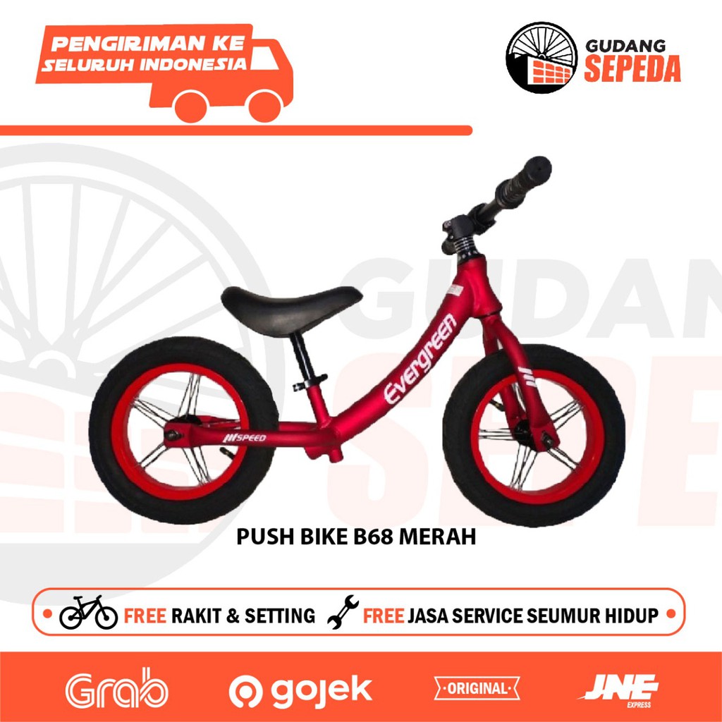 Sepeda Anak Pushbike Push Bike Balance Keseimbangan Evergreen Tanpa Pedal Bonus helm deker pelindung