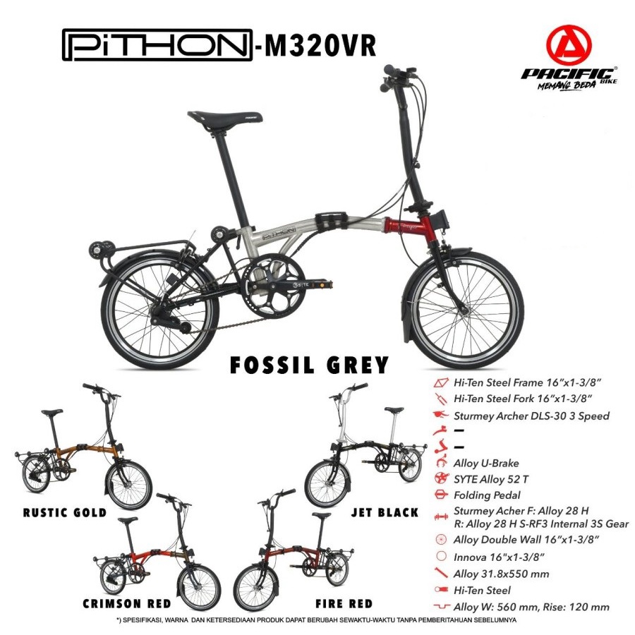 Kelebihan - Kelebihan membeli Sepeda Lipat Pacific STEEL PITHON M320VR 1x3 MD 16 Inch Garansi SNI di Toko ini