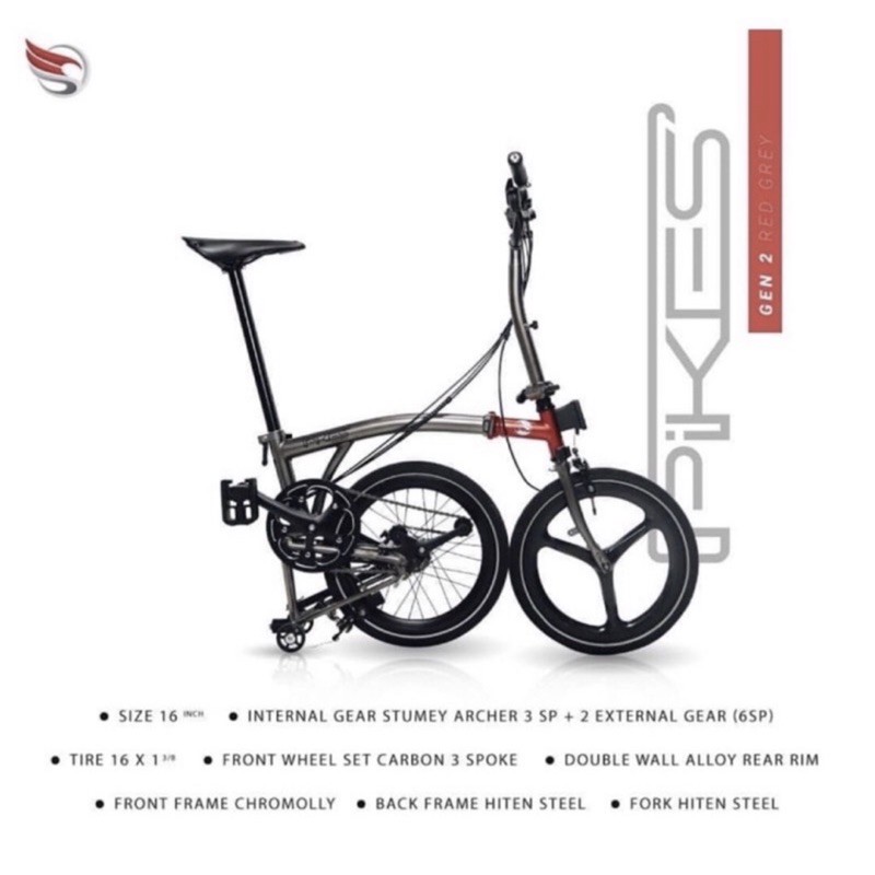 Alasan kenapa harus beli Sepeda Lipat Element Pikes GEN 2 CJ Grey Red Chicco Jerikho series 6 speed (3x2)Bonus Tas Helm Toolkit SNI sekarang