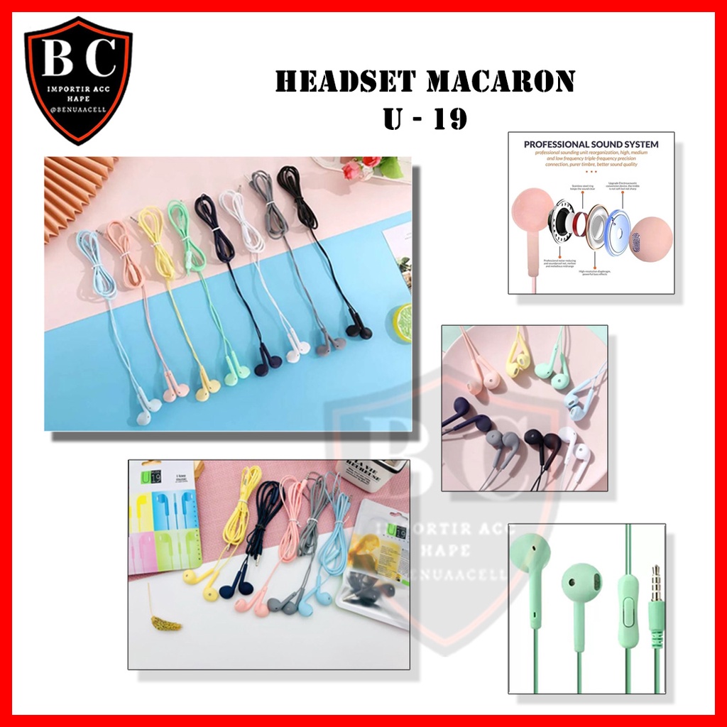 HANSFREE WARNA WARNI JACK 3.5 - HEADSET MACARON EXTRA BASS U19 - BC
