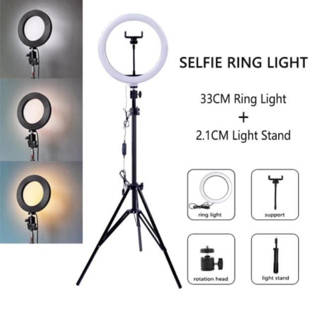 Paket Komplit Ringlight 33cm + Tripod 2,1 Meter Make Up Vlog Lampu Ringlight vlog