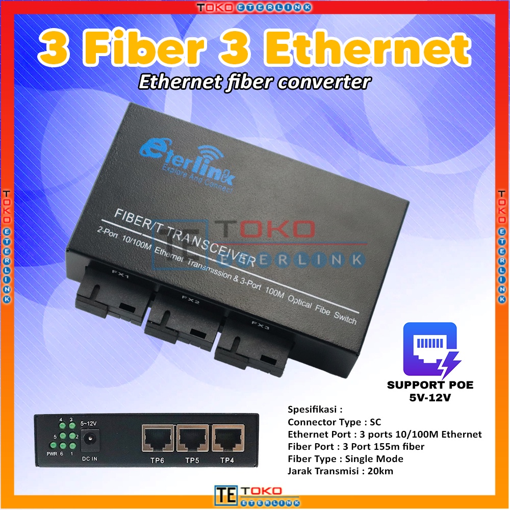 【Support POE】10100M 3F3E Switch Ethernet Media Fiber Optik Reverse POE Media Converter 5V-12V power input