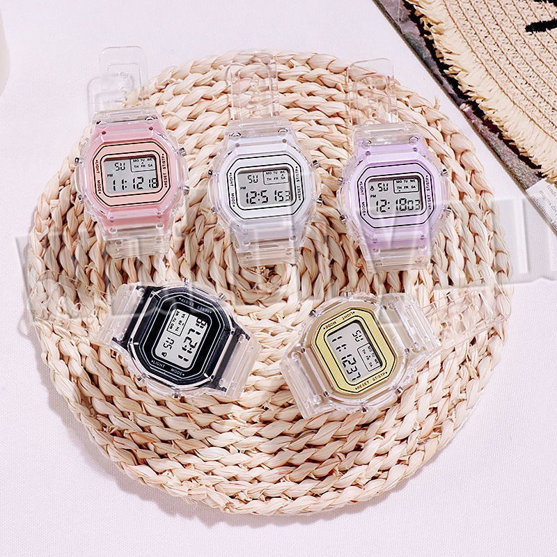Watchyou Jam Tangan Wanita Rubber Digital Segi Transparan Murah Karet Sport Led Pria Wanita Couple Watches