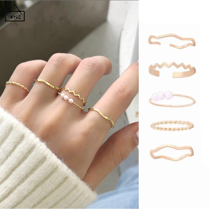 Alasan kenapa harus beli COD❤️ 5 pcs Cincin Set Fashion Aksen Berlian Imitasi Mutiara Untuk Wanita-A.one sekarang