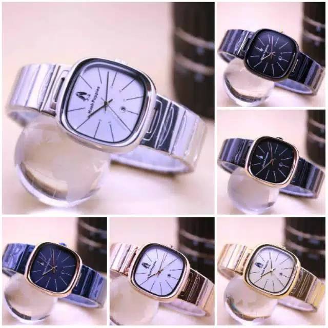Jam Tangan WanitaCewek Hush Puppies Segi Full Stainless Tanggal Aktif HP-410