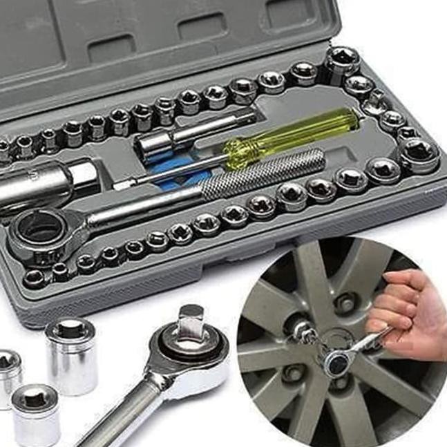 BAYAR DITEMPAT - Kunci Shock 40 Pcs / Kunci Sock Shock Pas / Peralatan Bengkel / Peralatan Multifungsi Mobil Dan Motor 1 Set Isi 40 Serbaguna Termurah