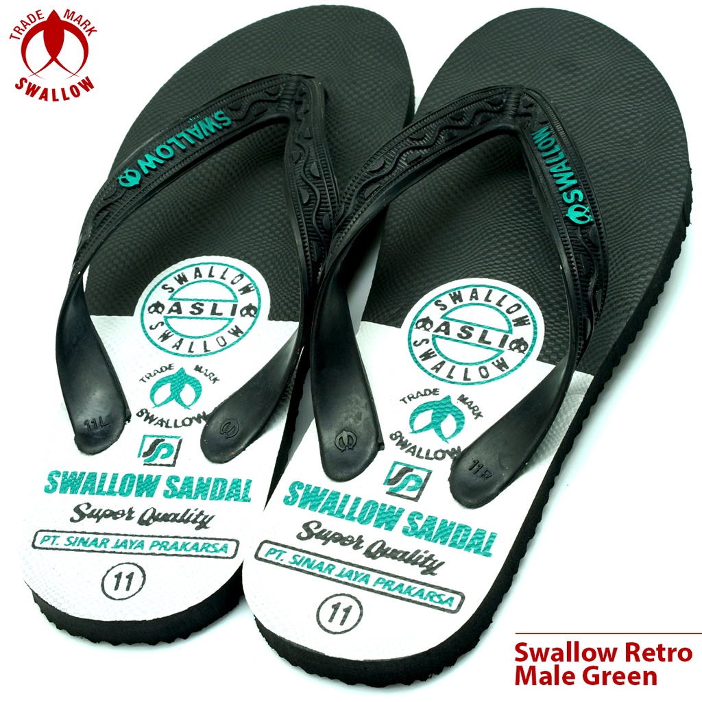 Sandal Swallow Retro Male Pria Laki-Laki Cowok Hitam Sendal Swalow Jepit 9,5 - 11 38 39 40 41 Karet [SWLTRAD 02 A].